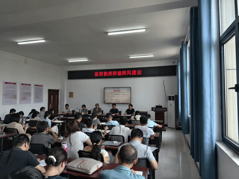 9月3日,学院组织召开师德师风专题学习会,集中学习了《中华人民共和国教师法》和《新时代高校教师职业行为十项准则》,学院党委负责人结合教育领域典型案例,深入解读教师职业行为规范、依法执教、廉洁从教的重要性,强调了高校教师不可触碰的“红线”与“底线”。会议指出,师德师风是教师的立身之本,全体教师要将法规准则内化为思想自觉和行动自觉,把为党育人、为国育才的使命融入日常工作,做学生健康成长的指导者和引路人。